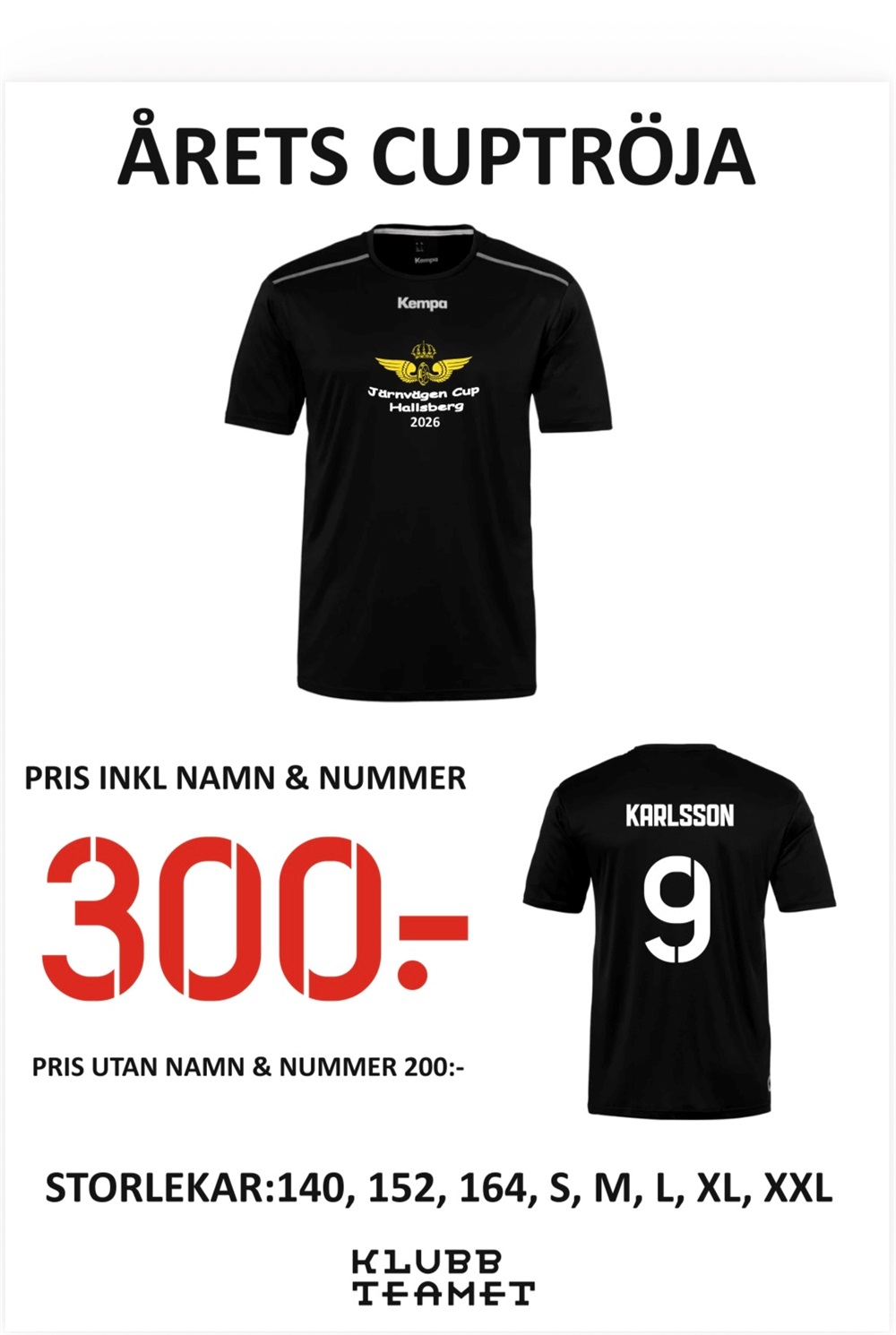 Även i år har killarna möjlighet att förbeställa en cuptröja till Hallsberg. Med tryck kostar den 300 kr.